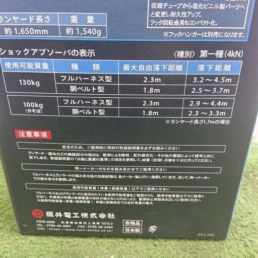/ 藤井電工ツインランヤード TL-2-EZ93SV-21KSG-130KG-JAN-BX【野田愛宕店:ITLM3LBKPD5I】
