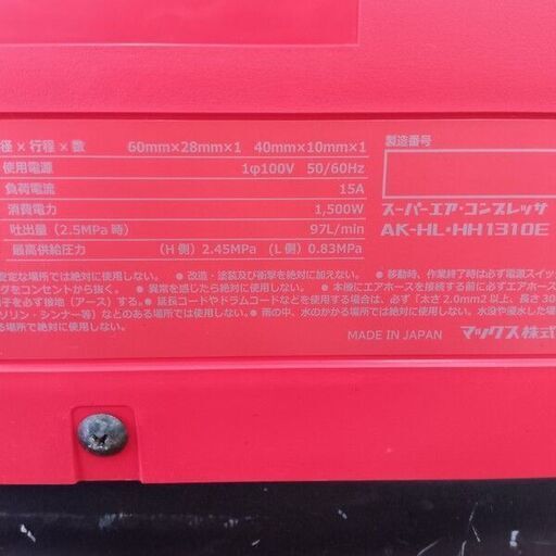 MAX/マックスエアコンプレッサー AK-HH1310E_レッド【野田愛宕店:ITKQM3R70U5M】個